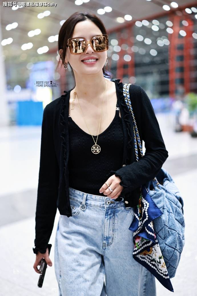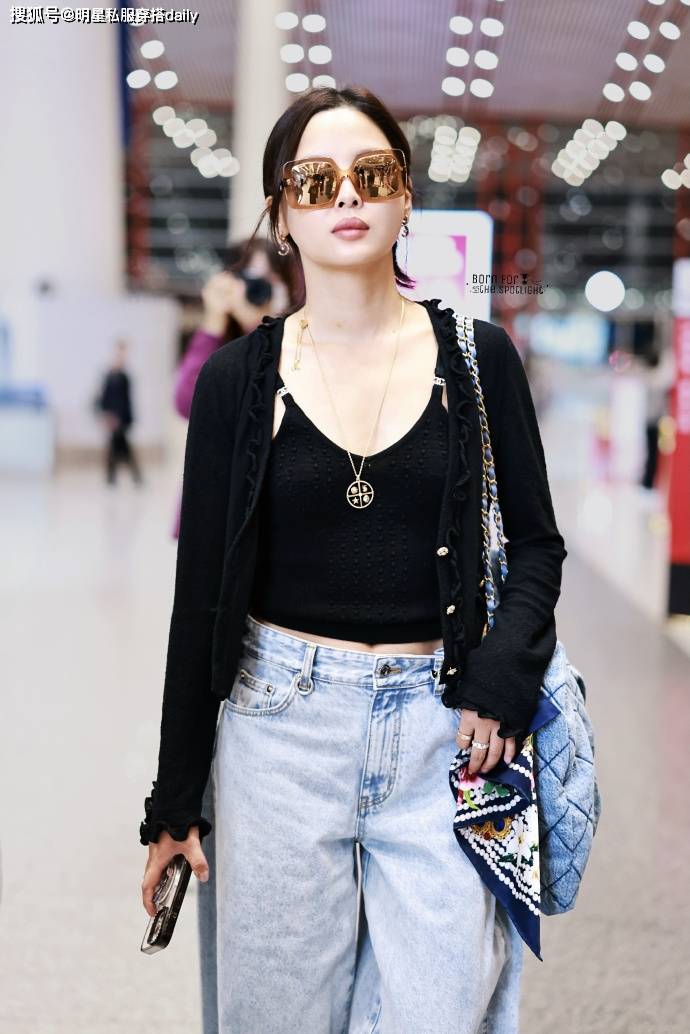 秋天穿衣的难点在于如何兼顾温度与风度。辛芷蕾选择了黑色系的分层搭配,完美诠释了这一平衡。内搭的小香风黑色吊带衫因其独特的纹理,摆脱了基础单品的乏味,展现出精致质感;外搭的黑色针织开衫柔软又舒适,宽松的廓形不仅掩盖身材小瑕疵,还营造出松弛自在的氛围。相似色系的叠穿因为材质差异反而层次分明,简约而不沉闷。这样的组合既百搭又耐看,无论什么肤色都能驾驭,堪称秋季的万能穿搭公式。
